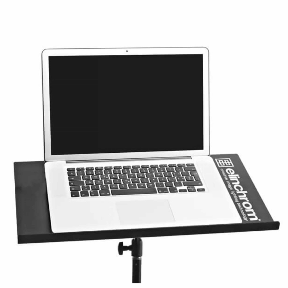 Elinchrom Computer Table for Photo Tripod – the perfect platform for your laptop in the studio. The Elinchrom Computer Table is specially designed for photographers and creatives who work tethered or need a stable workspace directly during photography. With its robust metal construction and tilting bracket, it provides a safe and flexible place for your laptop – whether it is 13”, 15” or 17”.