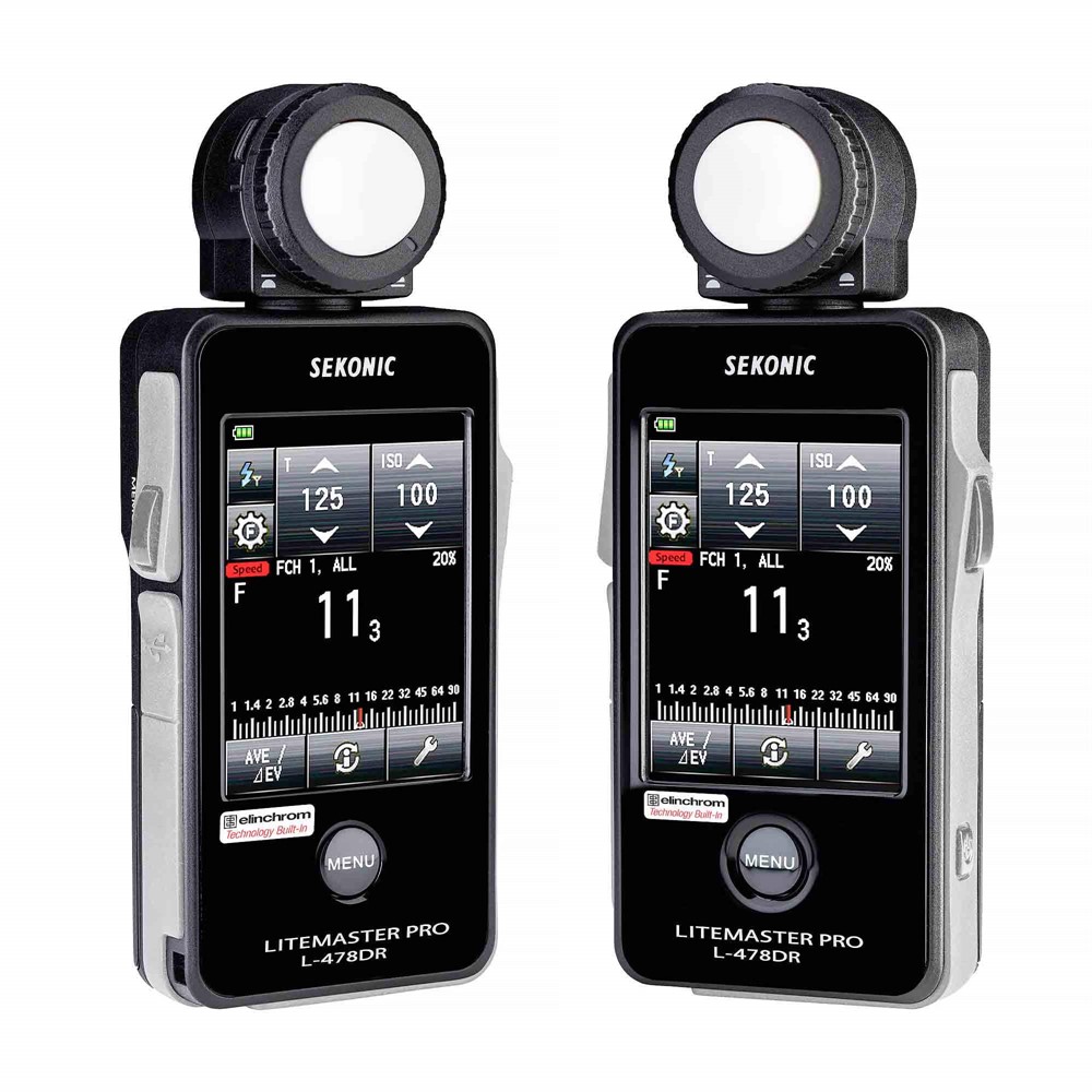 Sekonic Exposure meter Litemaster Pro L-478DR Elinchrom are the world's first touch-screen-operated light meters. They have an array of unique, must-have features for both still and motion story tellers. Their compact size is both instantly familiar and comfortable to use. A large LCD (2.7") displays ambient, flash, cine and a host of other information in a clear and understandable way. Settings are made by simply touching or sliding a finger over the screen.