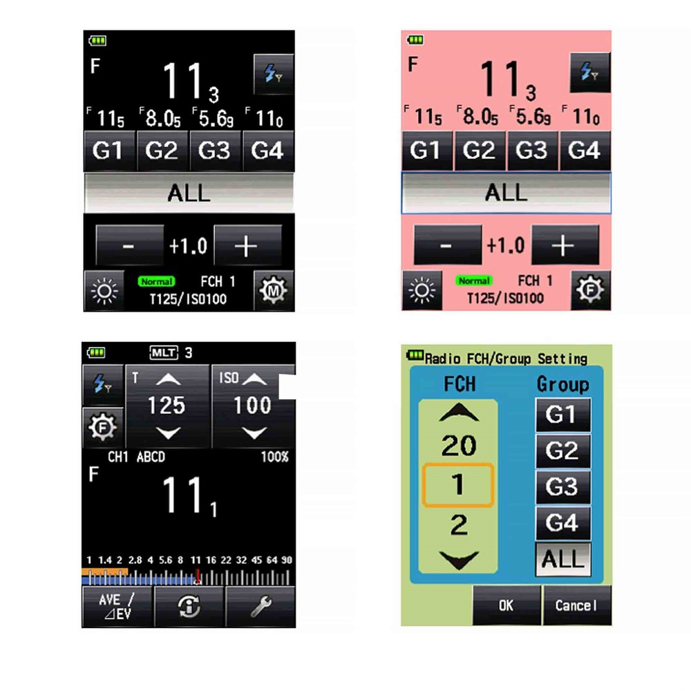 The L-478DR-EL’s power screen enables separate selection of any of the four lighting Groups, 1,2,3,4, for flash brightness adjustment in 0.1 increments by simply tapping buttons on the meter’s touch screen. The F-number value for the light being measured appears in a central area on the screen as well as over respective group selection button. The measured value for each group is maintained as a visual record of the brightness difference of the lights in use so that lighting ratios can be easily determined. Once flash adjustment is made for each group, ALL flashes can be triggered for a total reading for exposure. The L-478DR-EL can also be used to measure and adjust modeling light brightness of Elinchrom flashes for cine/video lighting applications. The L-478DR-EL triggering and power control is compatible with all Elinchrom flashes that use the EL- Skyport triggering system.