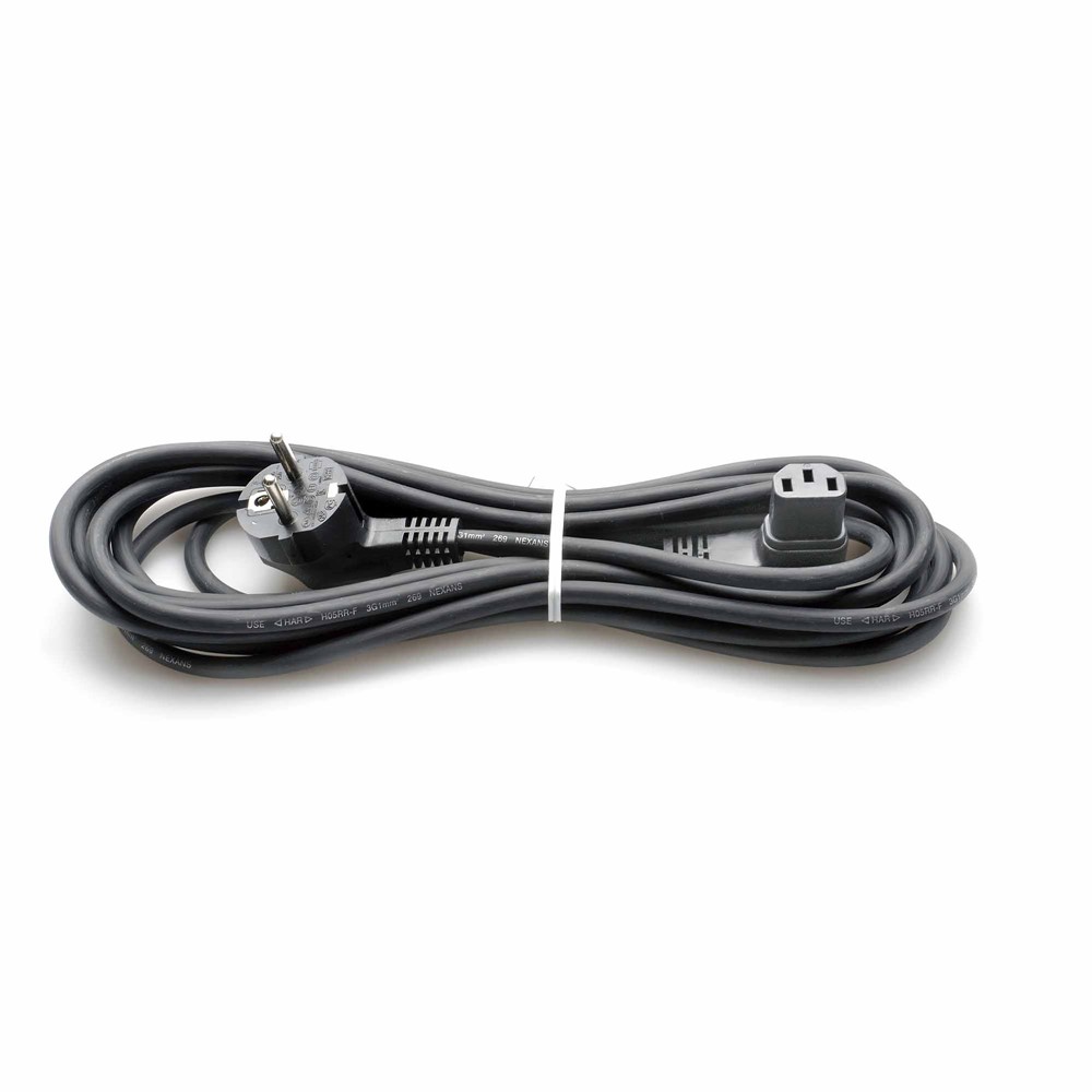 This black mains cable is rated for 10A and 250V, ensuring it can handle demanding power requirements while maintaining consistent performance. The cable is adapted to HAR/VDE certification standards, which are printed directly on the cable for easy verification. These certifications assure that the cable meets high safety and quality standards.