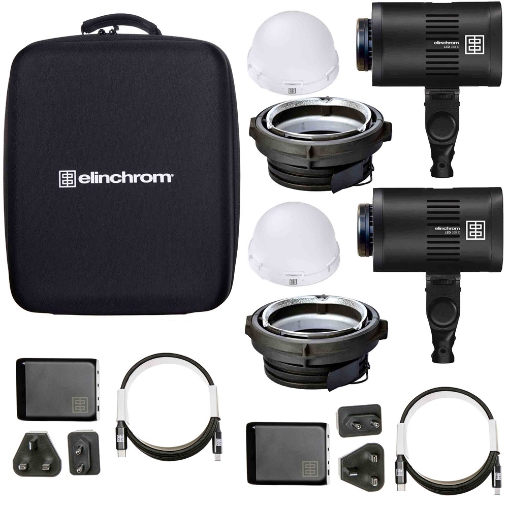 Elinchrom LED 100 C Dual Kit mit Ladegeräten. Dieses kompakte und vielseitige 100W LED-Beleuchtungsset ist ideal für Fotograf:innen, Videograf:innen und Content Creators. Mit einem hohen CRI von 95+ garantiert es eine präzise Farbwiedergabe. Die einstellbare Farbtemperatur von 2700K bis 6500K sowie der 50W-RGB-Modus bieten außergewöhnliche Flexibilität und kreative Möglichkeiten. Das Set ist für Studio- wie auch Außeneinsätze konzipiert und erfüllt professionelle Anforderungen. Der integrierte Akku wird bequem über USB-C aufgeladen und der intuitive Touchscreen sorgt für eine einfache Bedienung. Das komplette Kit beinhaltet 2x Elinchrom LED 100 C Leuchten, 2x Elinchrom OCF-Adapter, 2x USB-C-Ladegeräte mit Kabeln, 2x Diffusorkuppeln und eine Transporttasche.