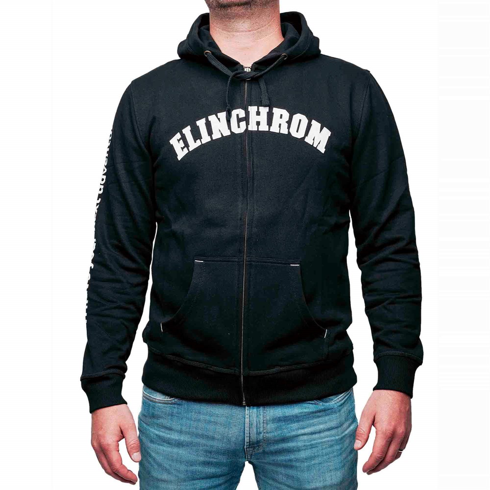Elinchrom Hoodie, size XL. Elinchrom Hoodie made of 100% cotton, size X-Large. All black with cool curved Elinchrom logo on the front, Elinchrom icon logo on the back and the text What's Your Next Adventure along the right arm. Strong zipper and double front pockets. Comfortable sweater to always carry in the photo bag as a reinforcement garment.