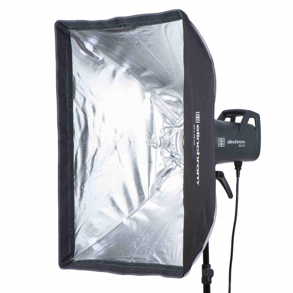 Elinchrom Rectabox 55 x 75 cm with even light distribution. The rectangular shape can be used horizontally or vertically for more flexibility. These light modifiers provide precise control over direction and light spread with the included grids. Ideal for still life and small spaces.